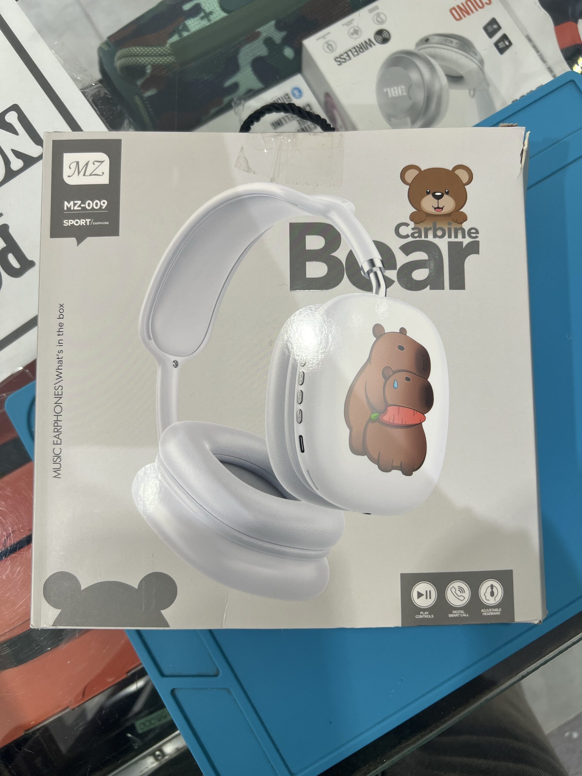 Auriculares MZ-009 blancos/negros con diseño de capibara